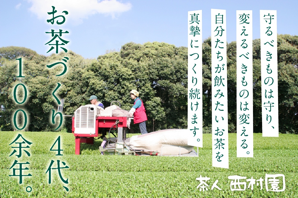 ここは、全国有数の茶産地・静岡県牧之原台地。西村園は4代、100余年に渡り、温暖な気候に恵まれたこの地でお茶づくりに励んで参りました。